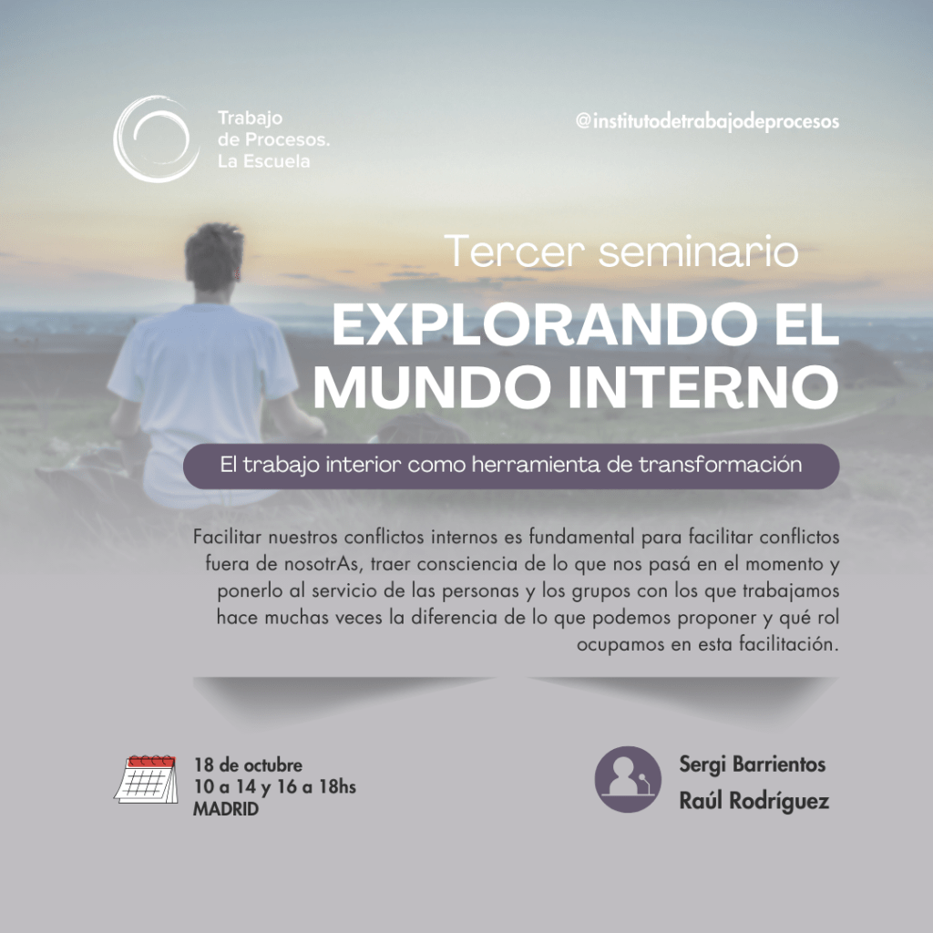 Me siento con más libertad para escribir, comunicar, hacer cosas… Desde esa libertad quiero invitaros a participar en el próximo seminario sobre Trabajo Interior que voy a cofacilitar con mi compañero Sergi Barrientos, de la Escuela de Trabajo de Procesos.